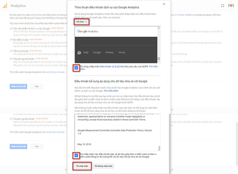 Lưu ý: để GA cập nhật các dữ liệu này thì bạn cần phải cài đặt vào mục tiêu cho website của bạn.
